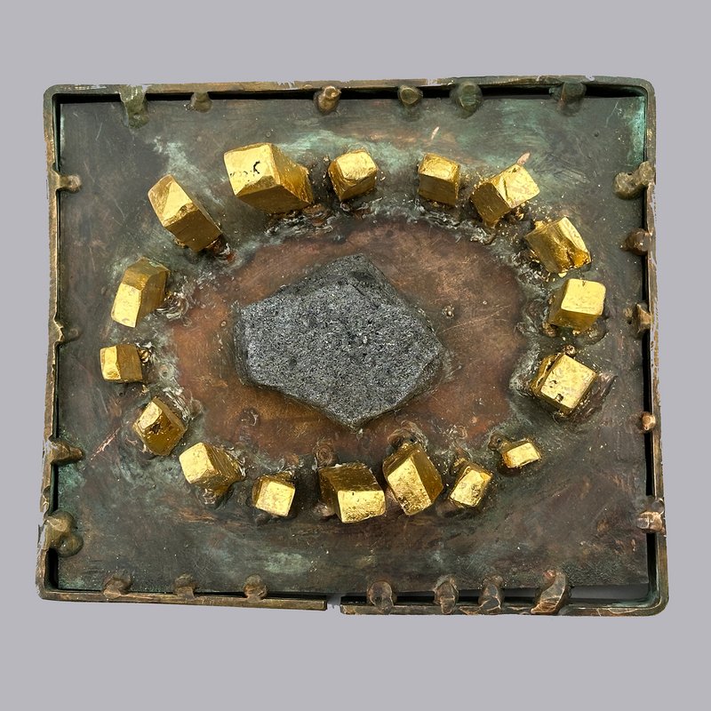 Basilius Kleinhans hat wie in jedem Jahr die Bernhard-Kleinhans-Plakette treffend und aussagestark gestaltet. In der Mitte ist ein Stück Ofenschlacke integriert. Die Idee des Künstlers ist es, auch den Zusammenhalt der um die Mitte herumstehenden Menschen bei der Verteidigung unserer freien Gesellschaft und unserer Werte zu symbolisieren.